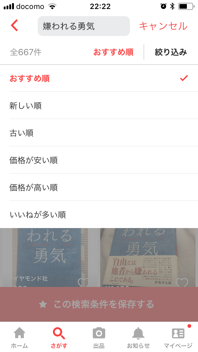 下の虫めがねマーク「さがす」をタップすると、検索ページが表示されます。