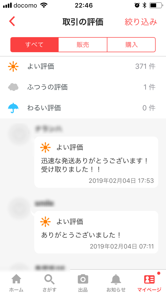 評価は購入者側が先につけますが、出品者側からは取引完了まで見ることができません。