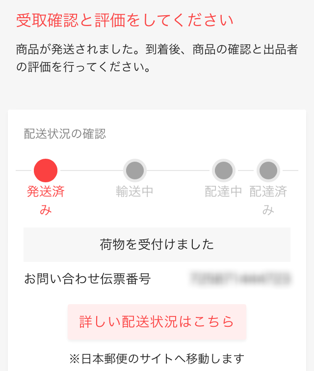 購入したら、あとは出品者からの連絡・発送待ちです。