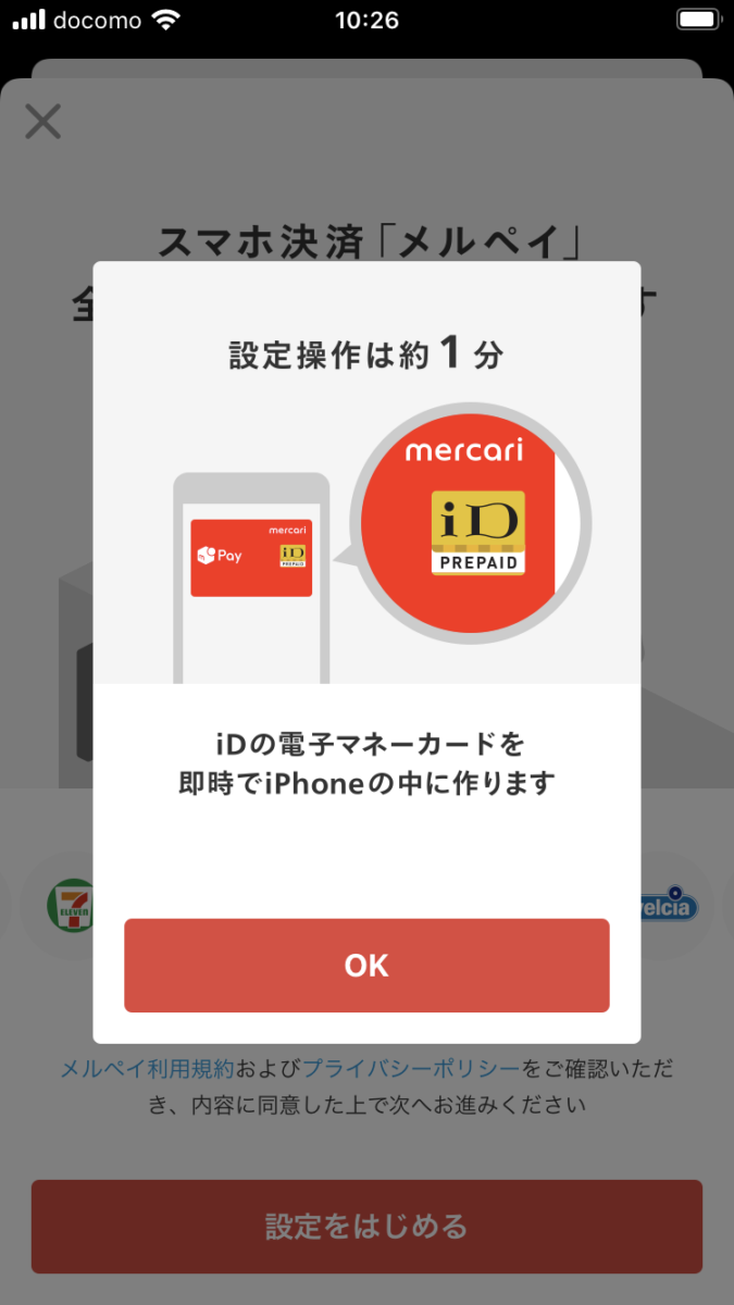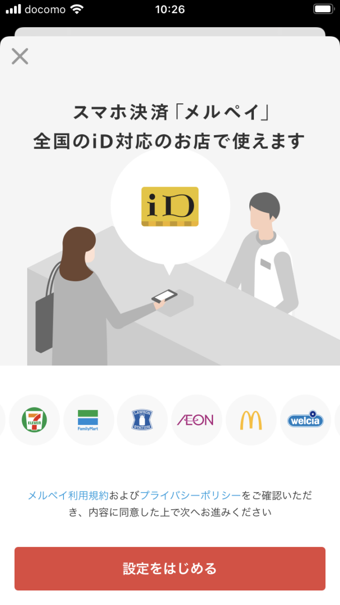 メルペイを iDとして使うには、設定が必要です。