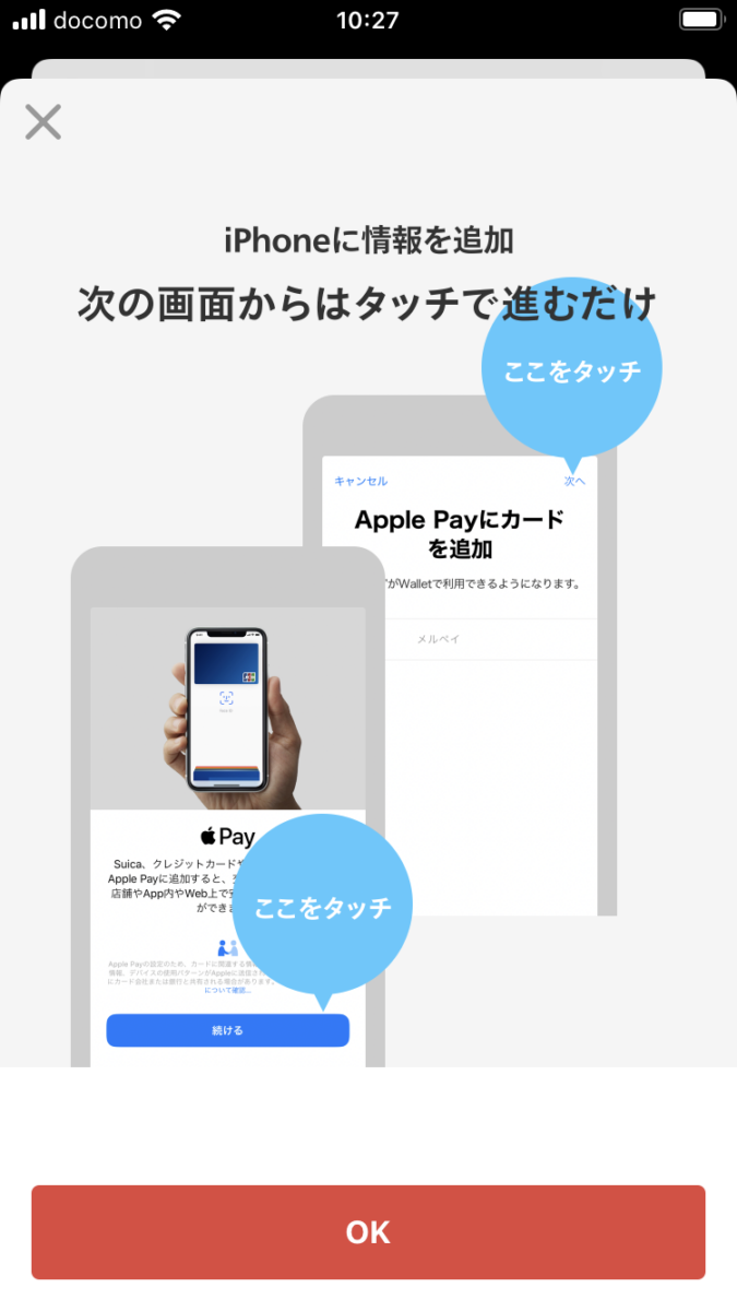 メルペイの設定が始まるので、あとは画面の指示どおり進めていきます。