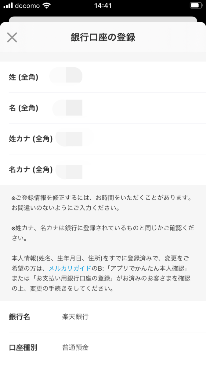 メルペイで支払い銀行口座を登録すれば、本人確認は必要なし。