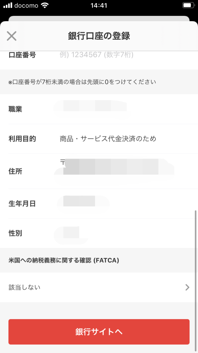 - メルペイ支払い銀行口座登録